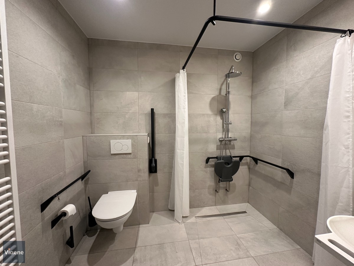 Recente assistentiewoning 98 m² - rustig doch centraal gelegen in het stadscentrum van Oostende - nabij het Casino-Kursaal, de Zeedijk, de winkel-wandelstraten en het Wapenplein - rolstoeltoegankelijk appartement gelegen op de derde verdiep in Residentie 'Rialto' met prachtige binnentuin - ruime inkom - lichtrijke living met terras 6m² - open volledig geïnstalleerde keuken met frigo, kookplaat, vaatwasser en oven - afzonderlijke berging met aansluiting voor wasmachine - gastentoilet - ruime slaapkamer met dubbel opendraaiend raam - badkamer met douche, lavabo en toilet - alle ramen zijn voorzien van rolgordijnen - afzonderlijke berging in de kelder - Residentie met een Brasserie, cinemazaal, fitnessruimte, sauna, bubbelbad, kine ruimte, kapsalon & schoonheidsspecialiste, wassalon, fietsenstalling en gemeenschappelijk terras - de extra zorgdiensten zijn het innovatief oproepsysteem, de boodschappendienst, algemene en medische permanentie, huishoudhulp, klusjesdienst,... - verhuurd aan 1.215 euro per maand + kosten ten laste van de huurder - aankoop met 12% BTW - geen onroerende voorheffing te betalen bij assistentiewoningen