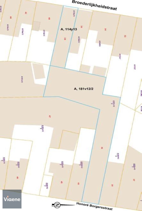 2 panden tussen de Honoré Borgersstraat 41 en de Broederlijkheidstraat 38 in een woonwijk ten westen van de stadskern gelegen tussen de Torhoutse- en Nieuwpoortsesteenweg