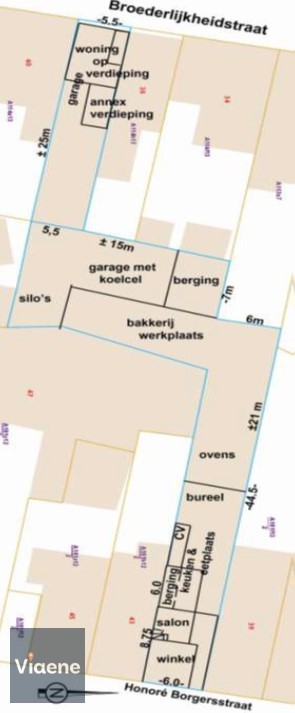 * achterliggende werkplaats voor de bakkerij met silo's 200 m²