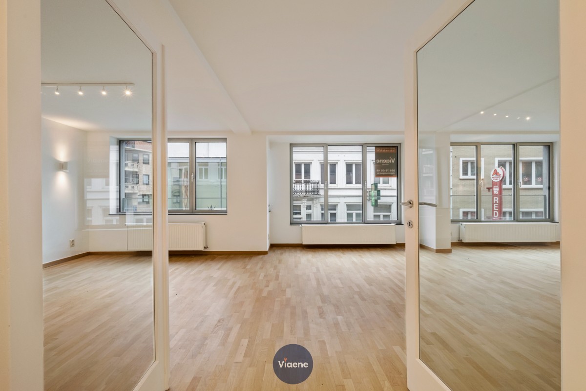 Volledig gerenoveerde Kantoorruimte centrum Oostende - totale oppervlakte 150 m² - gelegen pal in het stadscentrum nabij het station - volledige 2e verdiep in een handelsgebouw met winkels en kantoren - 3 afzonderlijke burelen en 1 grote open moderne ruimte van 56 m² met veel lichtinval - volledig ingerichte keuken - sanitair - terras - volledig nieuw ingericht, geverfd en voorzien van nieuwe verlichting - afzonderlijke ingang aan de Jozef II straat - ruime fietsenberging - volledig instapklaar - onmiddellijk vrij