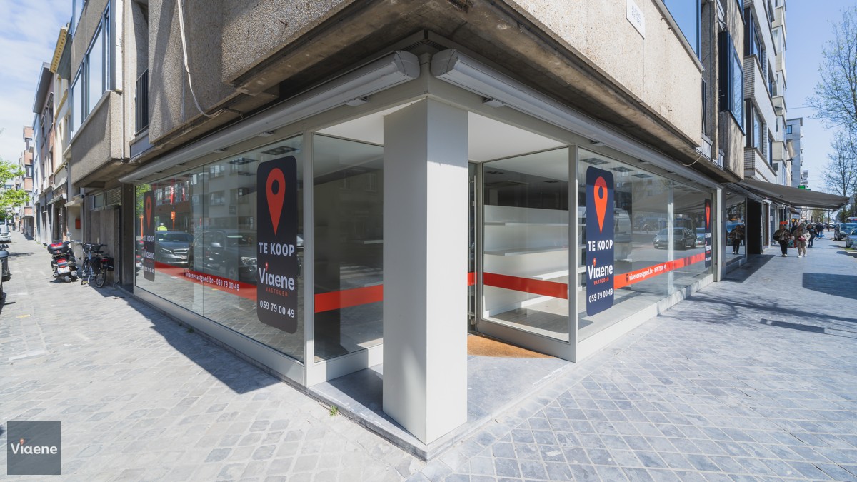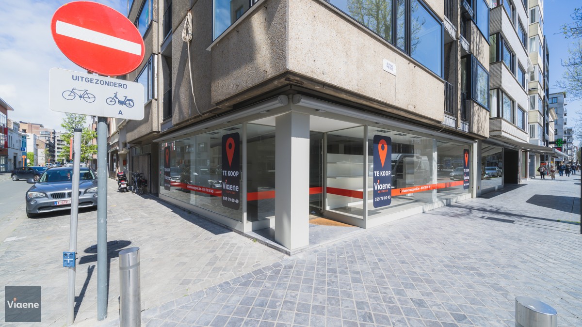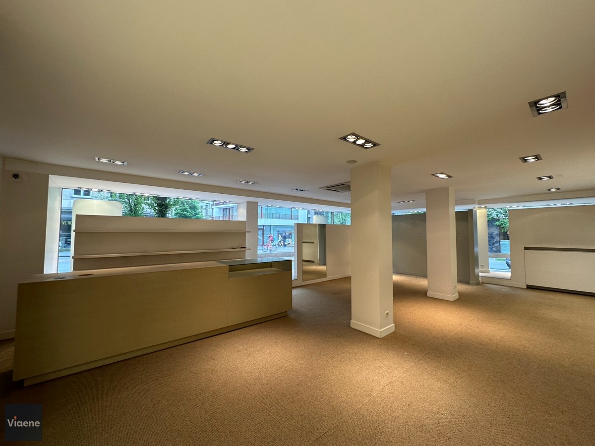 Handelsgelijkvloers 202 m² - opvallend hoekpand commercieel gelegen op de drukke Alfons Pieterslaan - nabij het stadhuis en Petit-Paris - etalage 20 meter met hoge visibiliteit - winkelruimte ingericht en instapklaar met ingemaakte kasten, toonbank, verlichting en vloerbekleding - afzonderlijke bureauruimte - ruim magazijn voor stockage op het gelijkvloers met afzonderlijke leveranciers ingang in de zijstraat - toilet - kelder - verwarming op aardgas - mogelijks te verhuren aan 2.100 euro per maand - vrij bij akte - volledig instapklaar