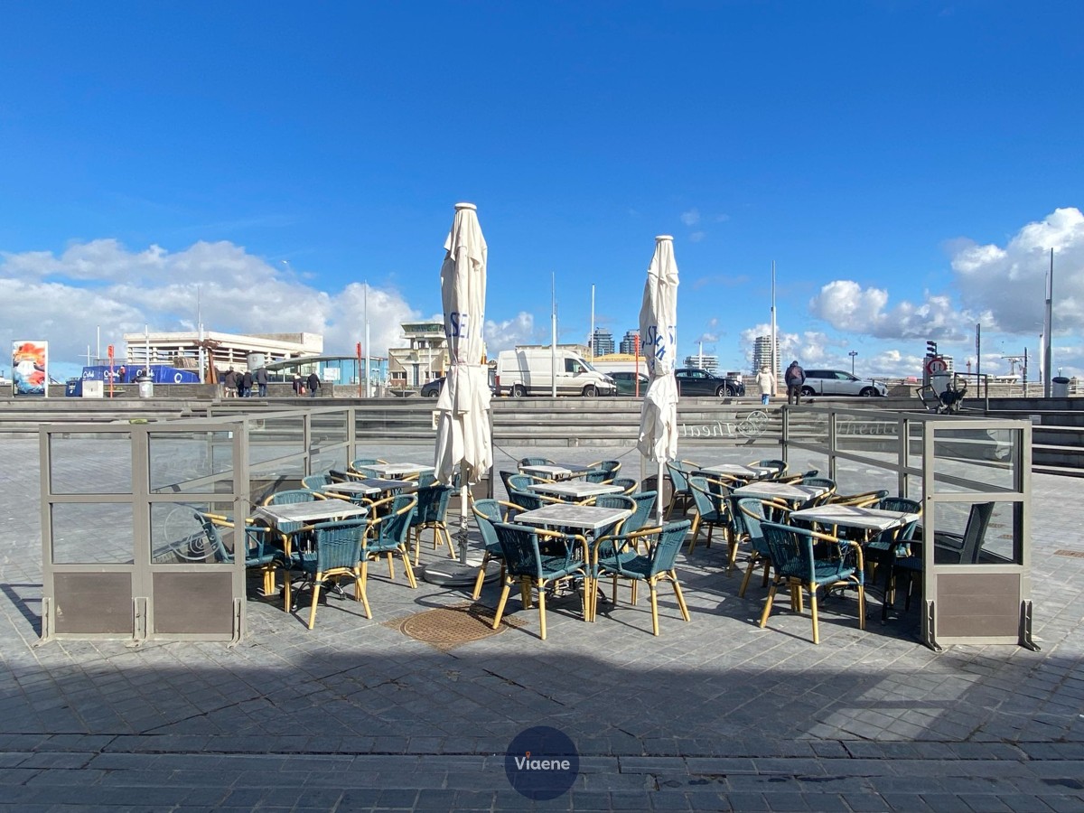 Horecapand geschikt voor Café op zeer commerciële locatie - te huur in pop-up voor 2 jaar - gelegen op het Vissersplein met een open zicht op de Visserskaai - toeristische locatie met een constante stroom van dagjestoeristen uit het station, wat zorgt voor veel potentiële klanten - gelijkvloers horecazaak die volledig vrij is van brouwerijverplichtingen - half open terras met 24 zitplaatsen - fantastisch zonneterras op het plein met 36 zitplaatsen - kelder met toiletten - onmiddellijk beschikbaar