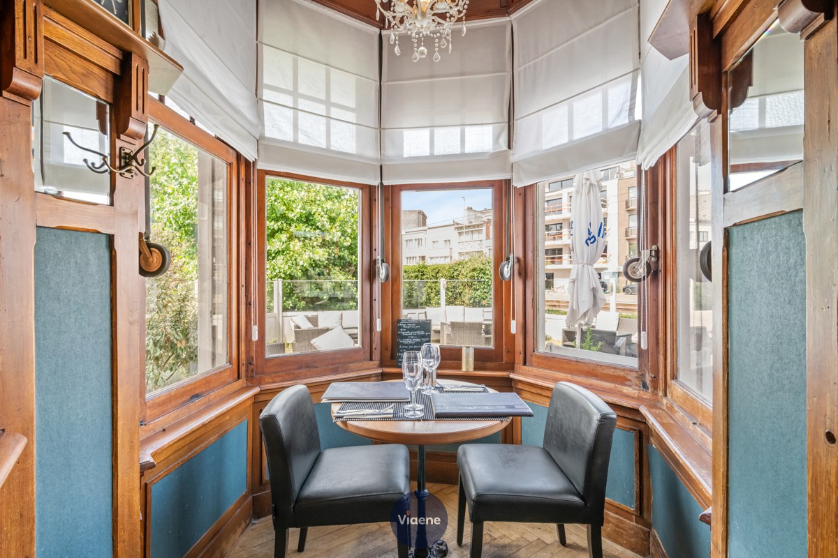Restaurant – Brasserie “Villa Marie Joseph” – commercieel gelegen in een opvallende Belle-époque kustvilla – centrale locatie in het hart van Westende-bad aan de tramhalte en op wandelafstand van de zeedijk – gevestigde en succesvolle uitbating in een karaktervol pand met behoud van originele Belle-époque elementen – gezellig en warm ingerichte zaak met 68 zitplaatsen binnen – afzonderlijke ruimte geschikt voor groepen of private diners – aangenaam zonneterras met 70 zitplaatsen – volledig ingerichte bar – professionele ingerichte keuken – afzonderlijke en praktische stockageruimtes – volledig vrij van brouwerij- of andere leveranciersverplichtingen – nieuwe handelshuurovereenkomst 2500 euro per maand