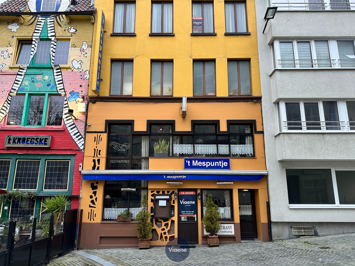 Authentiek horecapand 't Mespuntje' met bovenliggende kamers te koop - commercieel gelegen handelspand met woonst - gelegen aan het karaktervolle Pauluspleintje en in de directe nabijheid van het station, de Visserskaai en de Zeedijk - opvallend horecapand met een herkenbare gevel - ingerichte horecazaak op het gelijkvloers met authentieke bar - bel-etage verdieping die momenteel ingericht is als restaurantgedeelte met zicht op het plein - volledig geïnstalleerde keuken op het 2de verdiep en voorzien van een professioneel gasfornuis en keukentoestellen - volledige inboedel en alle materialen inbegrepen in de verkoopprijs - sanitair aanwezig - afzonderlijke ingang die toegang biedt tot de 4 bovengelegen kamers - 3 ruime kamers uitgerust met eigen douche, lavabo en toilet - 1 kamer met sanitair op de gang - EPC label C - vrij bij akte - een zeldzame kans op een historische toplocatie in Oostende