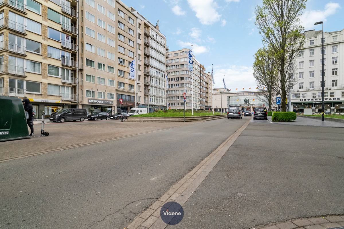 Gezellig appartement met een mooi open zicht op het Marie-José plein, het Casino-Kursaal en de Leopold II laan - ideaal gelegen in de het midden van de stad op 100m van de zeedijk, alle handelszaken en restaurants - gelegen in een brede laan met open zicht zonder inkijk - lichtrijk appartement gelegen op de 4de verdieping met lift in een verzorgde residentie - ruime inkomhal - lichtrijke living met veel natuurlijke lichtinval en grote ramen - balkon met fantastisch zicht op de Leopold II laan, het stadspark en het Marie-José plein - volledig geïnstalleerde keuken met toegang tot een zonnig terras - badkamer met lavabo en ligbad - 2 volwaardige ruime en comfortabele slaapkamers waarvan 1 met terras - berging - afzonderlijk toilet - kelder - vrij bij akte
