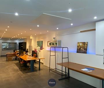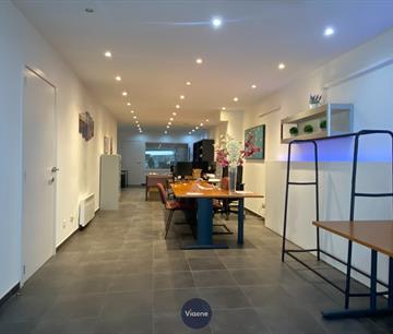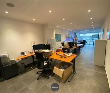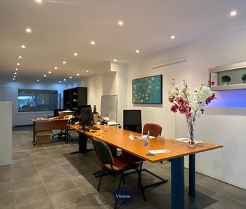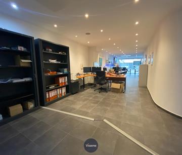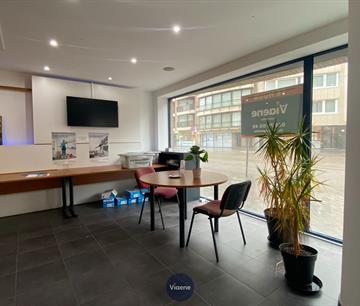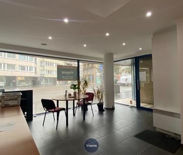 Handelsgelijkvloers gelegen op een druk kruispunt met veel visibilteit - ideaal geschikt als kantoor of specialiteitenwinkel - 130 m² handelsoppervlakte - brede gevel met grote ramen en veel lichtinval - ruime open handelsruimte met tegelvloer - 2 ruime afgesloten kantoorruimtes - ingerichte kitchenette - sanitair - mogelijkheid om 2 autostaanplaatsen bij te huren in het gebouw - onroerende voorheffing ten laste van de huurder - onmiddellijk vrij