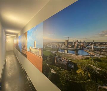 Volledig gerenoveerde Kantoorruimte centrum Oostende - duplex handelsruimte met groot zonneterras - gelegen pal in het stadscentrum nabij het station - 2e en 3e verdiep in een handelsgebouw met winkels en kantoren - 1 grote open moderne ruimte van 56 m² met veel lichtinval - 3 afzonderlijke burelen - badkamer - volledig ingerichte keuken - sanitair - dakterras - volledig nieuw ingericht, geverfd en voorzien van nieuwe verlichting - afzonderlijke ingang aan de Jozef II straat - ruime fietsenberging - volledig instapklaar - onmiddellijk vrij