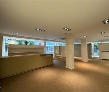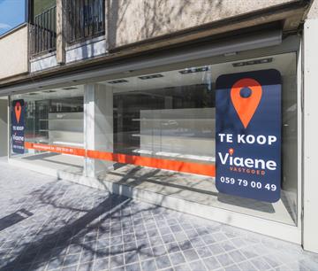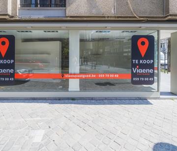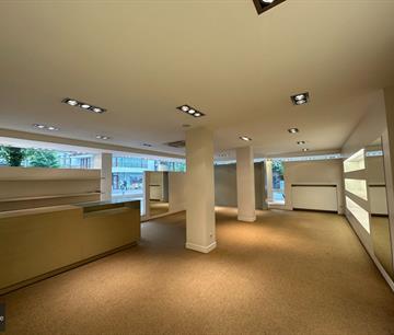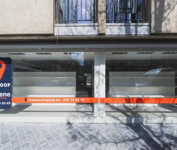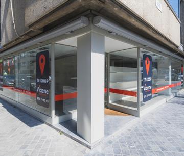 Handelsgelijkvloers 202 m² - opvallend hoekpand commercieel gelegen op de drukke Alfons Pieterslaan - nabij het stadhuis en Petit-Paris - etalage 20 meter met hoge visibiliteit - winkelruimte ingericht en instapklaar met ingemaakte kasten, toonbank, verlichting en vloerbekleding - afzonderlijke bureauruimte - ruim magazijn voor stockage op het gelijkvloers met afzonderlijke leveranciers ingang in de zijstraat - toilet - kelder - verwarming op aardgas - mogelijks te verhuren aan 2.100 euro per maand - vrij bij akte - volledig instapklaar