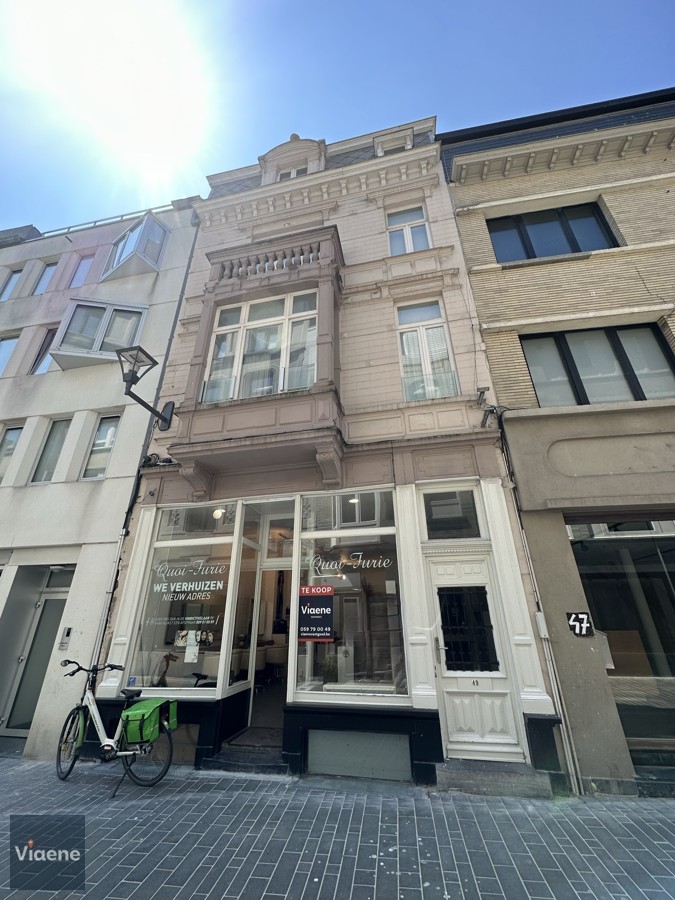 Eclectisch winkelpand bouwjaar 1918 - commercieel gelegen in het oude stadscentrum nabij de Zeedijk, het Casino-Kursaal en het Wapenplein - zeer charmant opbrengstpand bestaande uit 5 entiteiten - ruim handelsgelijkvloers met kelder en koer vrij van gebruik - afzonderlijk vergunde kantoorruimtes op het gelijkvloers in het achtergebouw vrij van gebruik - afzonderlijke ingang naar de bovenliggende 3 verdiepingen met op elk verdiep een appartement met 2 slaapkamers die correct verhuurd zijn met een huuropbrengst van 2.100 euro per maand - mogelijke huuropbrengst voor het volledige gebouw 4.700 euro - elke entiteit heeft zijn eigen teller - gebouw met lage kostenstructuur en zonder lift - alle keuringen zijn conform - ideaal als opbrengstpand of als ruim woonhuis met tal van mogelijkheden