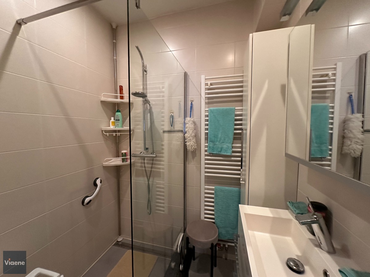 Opbrengsteigendom rustig gelegen in een villawijk aan de stadsrand van Oostende - gunstige ligging met een vlotte bereikbaarheid en gratis parkeren voor de deur - hoekpand bestaande uit 2 appartementen en 2 garages - zonnige appartementen met veel lichtinval en open zicht over de villa's - gelijkvloers appartement 113m²: inkom, living, volledig geïnstalleerde keuken, 3 slaapkamers, badkamer met lavabo en inloopdouche, koer en garage; correct verhuurd aan een zeer correcte en nette huurder met een maandelijkse huurprijs van 750 euro - appartement op het eerste verdiep 100 m²: inkom, living, volledig geïnstalleerde keuken, 2 slaapkamers, badkamer met lavabo en inloopdouche, zonneterras 35m²; correct verhuurd aan 850 euro per maand - ruime zolder die nog kan ingericht worden - alle elektriciteit in beide appartementen is conform gekeurd - alle pvc ramen zijn voorzien van rolluiken - het appartement op het 1e verdiep heeft een conformiteitsattest geldig tot 2034 - ideaal geschikt als opbrengsteigendom of tweewoonst