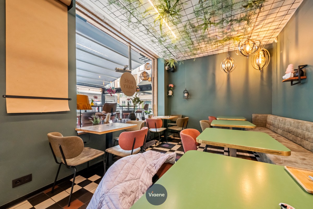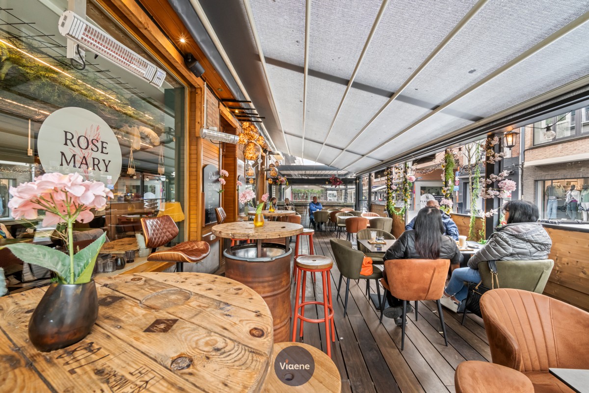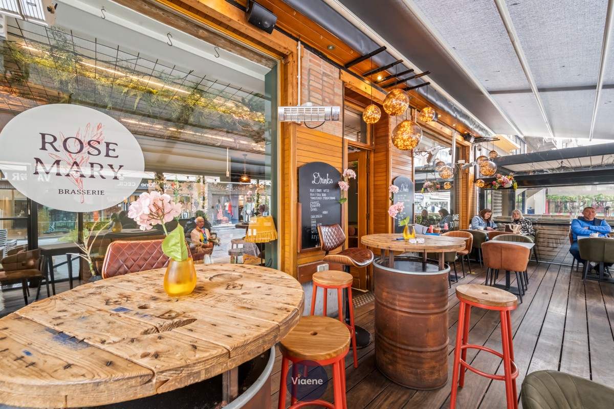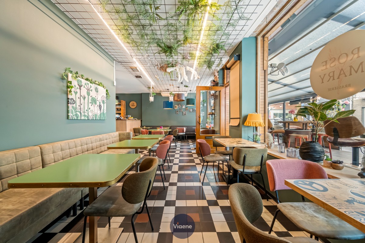 Brasserie “Rose Mary” – trendy en eigentijdse horecazaak met 90 zitplaatsen - gekend voor ontbijt, lunch en tapas – zeer centraal gelegen op een gezellig en levendig plein in het stadscentrum nabij de Kapellestraat en de Adolf Buylstraat – aangenaam zon-georiënteerd terras over de volledige gevelbreedte, voorzien van een openschuivend dak en een verzorgde houten vloer – de zaak is stijlvol en trendy ingericht, afgewerkt met duurzame en professionele materialen – volledig geïnstalleerde en functionele bar – ingerichte keuken met professionele toestellen en een kwalitatieve professionele dampkap “De Kobra” – eerste verdieping met een extra verbruiksruimte ideaal geschikt voor groepen, events of feestjes – sanitaire voorzieningen aanwezig – tweede en derde verdieping ingericht als praktische stockageruimte – droge en goed onderhouden kelder met diepvriescel en wasruimte – geen verplichtingen aan de brouwerij of andere leveranciers – maandelijkse huurprijs van 3.170 euro – onmiddellijk beschikbaar