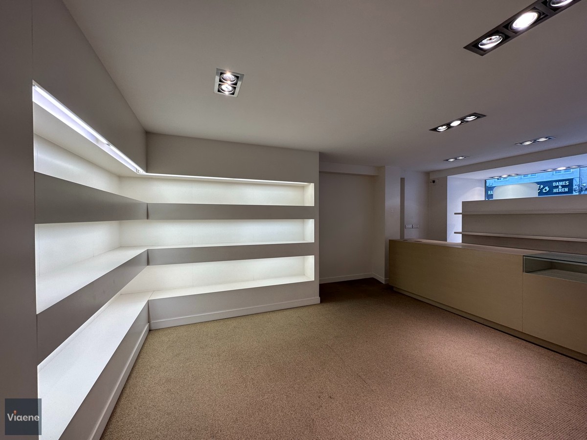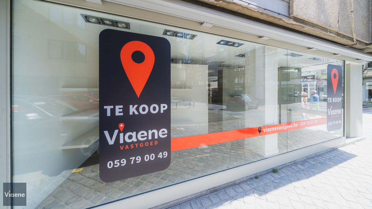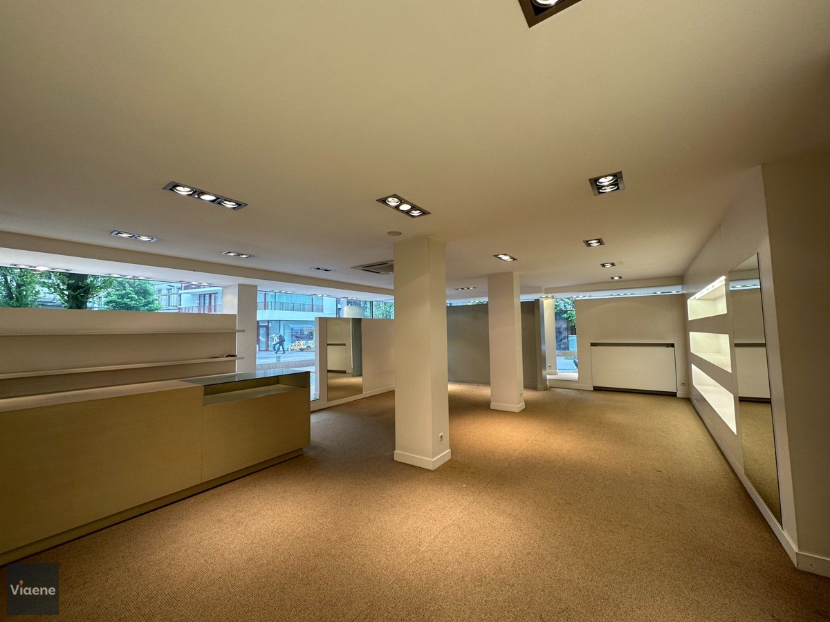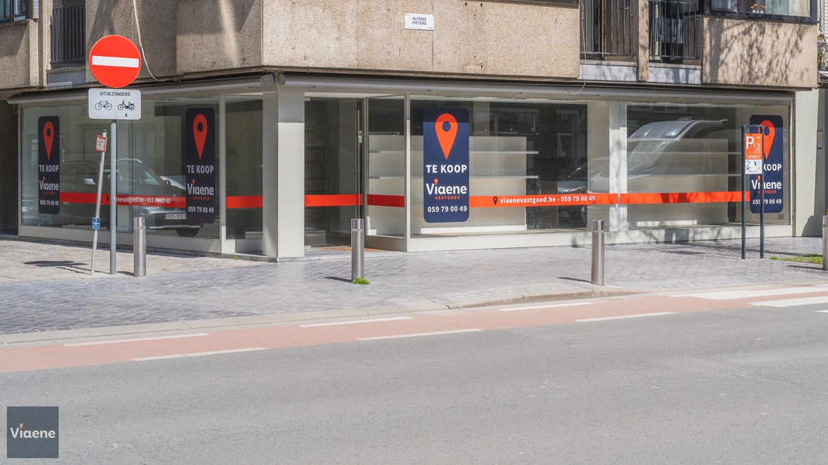 Handelsgelijkvloers 202 m² - opvallend hoekpand commercieel gelegen op de drukke Alfons Pieterslaan - nabij het stadhuis en Petit-Paris - etalage 20 meter met hoge visibiliteit - winkelruimte ingericht en instapklaar met ingemaakte kasten, toonbank, verlichting en vloerbekleding - afzonderlijke bureauruimte - ruim magazijn voor stockage op het gelijkvloers met afzonderlijke leveranciers ingang in de zijstraat - toilet - kelder - verwarming op aardgas - mogelijks te verhuren aan 2.100 euro per maand - vrij bij akte - volledig instapklaar