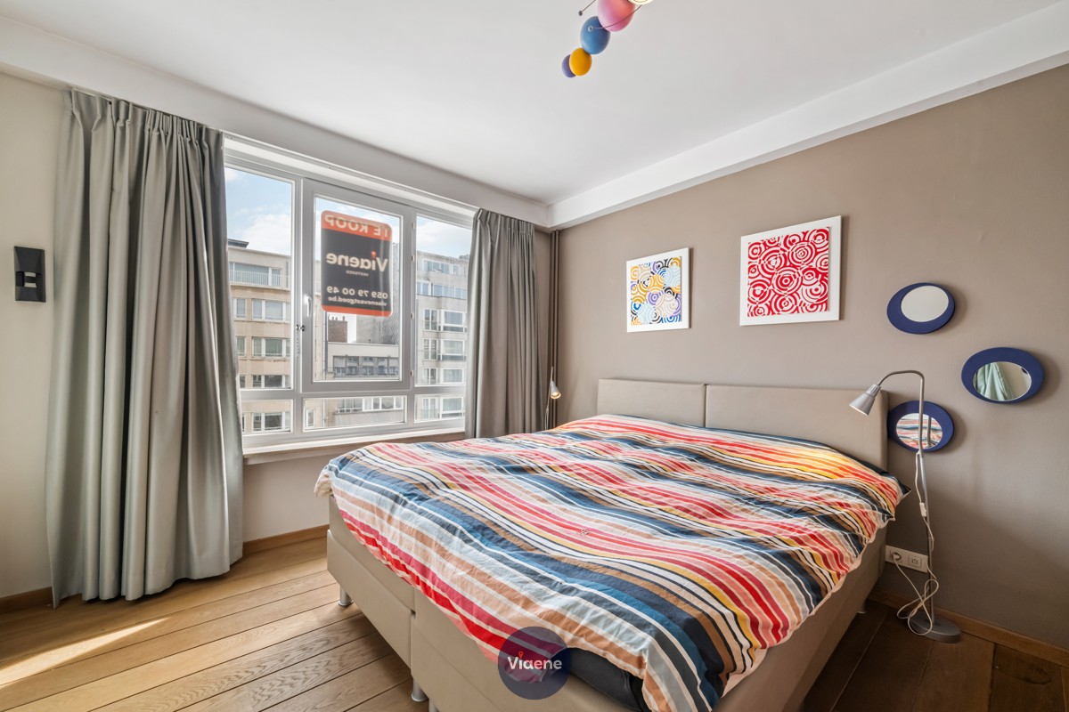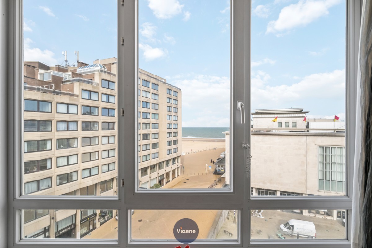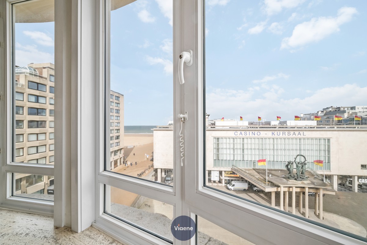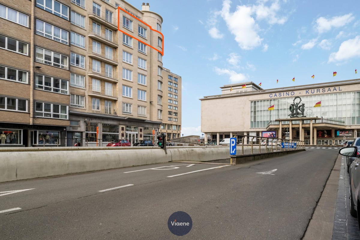 Luxueus en uiterst klassevol appartement op toplocatie te Oostende - gelegen rechtover het iconische Casino-Kursaal met frontaal adembenemend Zeezicht en een open panoramisch zicht op de levendige binnenstad - ideale centrale locatie pal in het midden van de stad - lichtrijk ruim hoekappartement met een royale woonoppervlakte van 125m² - gelegen op het 6e verdiep met lift in de standingvolle en verzorgde Residentie "Imperial" - ruime uitnodigende inkomhal - zeer ruime gezellige en sfeervolle living op de hoek van het gebouw met overvloedige natuurlijke lichtinval en frontaal prachtig zeezicht - volle kwalitatieve parketvloer in het volledige appartement - afzonderlijke volledig ingerichte keuken met mooi zicht op zee - 2 volwaardige ruime en comfortabele slaapkamers - ingerichte badkamer met ligbad en lavabo - ruime praktische berging met aansluiting voor een wasmachine en droogkast - afzonderlijk toilet - vrij bij akte - mogelijkheid tot aankoop van een gesloten garagebox onder de Zeedijk op slechts 100m van het appartement