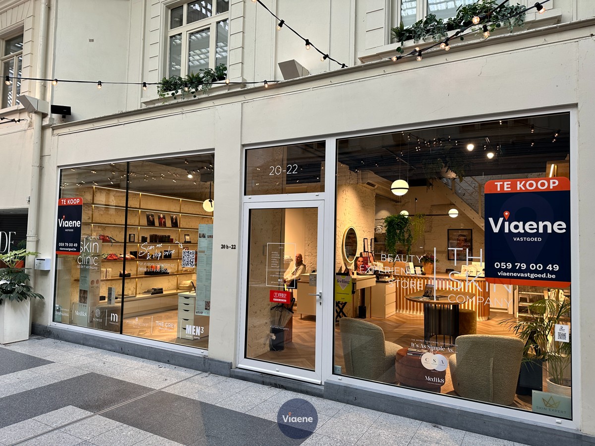 Hip en volledig gerenoveerd handelspand op commerciële locatie - goed gelegen in het drukke centrum van Oostende nabij de Vlaanderenstraat, het Wapenplein en de Zeedijk - gelegen in de James Ensorgalerij op een drukbezocht en goed bereikbare locatie - handelspand met een handelsoppervlakte van 128m² bestaande uit 3 verdiepingen - recent volledig gerenoveerd met nieuwe hoge etalageramen - brede gevel van 10 meter - opvallende en professioneel ingerichte handelsruimte met visgraatparket en brute muren - de open handelsruimte is geschikt voor meerdere handelsdoeleinden en wordt momenteel uitgebaat als 'The Beauty Clinic' - ingerichte kitchenette op het gelijkvloers - 1ste verdieping met 3 grote behandelingsruimtes - luxueus afgewerkte badkamer met inloopdouche, lavabo en toilet - kelder - momenteel correct verhuurd tot 01/02/2027 aan een solvabele partij voor de maandelijkse huurprijs van 1.560 euro per maand en onroerende voorheffing ten laste van de huurder - correcte investering met een rendement van 6,7%.